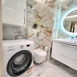 بالإضافة إلى معدات صنع القهوة والشاي، تشتمل مرافق الخدمة الذاتية في المطبخ الصغير على المايكرويف والغلاية الكهربائية والبرَّاد. تقع Eksclusive Apartment Paradise Down Town 6 Persons 3 Rooms على مسافة 350 متر فقط من أقرب محطة حافلات Glogera 01.